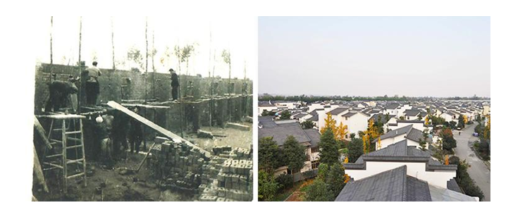 △战旗村上世纪七十年代修建的集中居住点和今天的新型社区